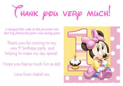 1st birthday thank u cards